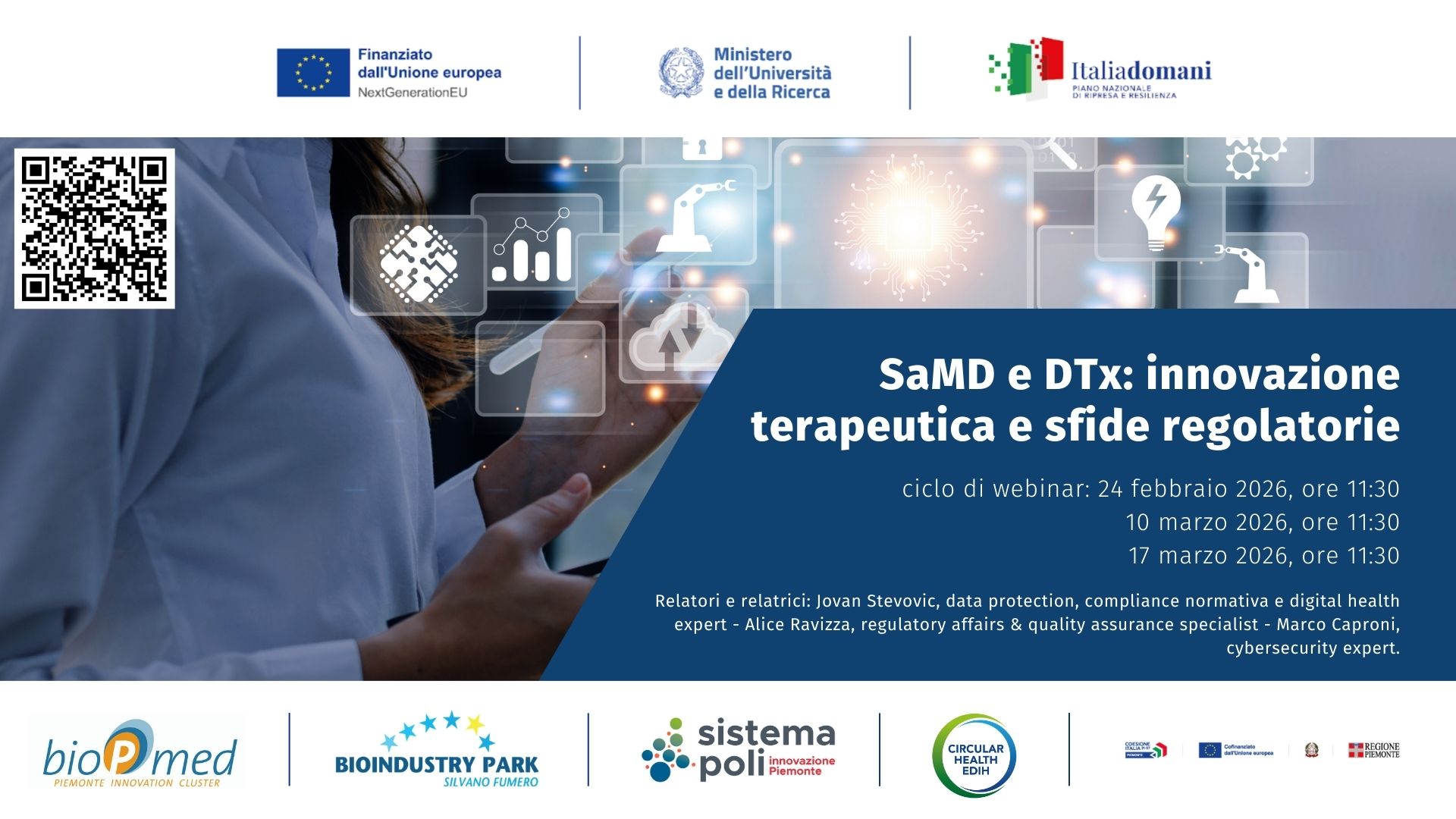 bioPmed dà il via al calendario 2026 dei suoi webinar formativi periodici con una rassegna di alto profilo composta da tre appuntamenti dedicati a Software as a Medical Device (SaMD) e Digital Therapeutics (DTx) e al loro potenziale nel sistema sanitario italiano. L’iniziativa nasce per rispondere alle esigenze di un ecosistema in rapida evoluzione, in … Continue reading SaMD e DTx: innovazione terapeutica e sfide regolatorie